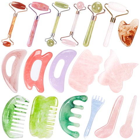 Özel akik reçine yüz germe yeşim rulo Anti Aging yüz masajı yeşim rulo ve Gua Sha